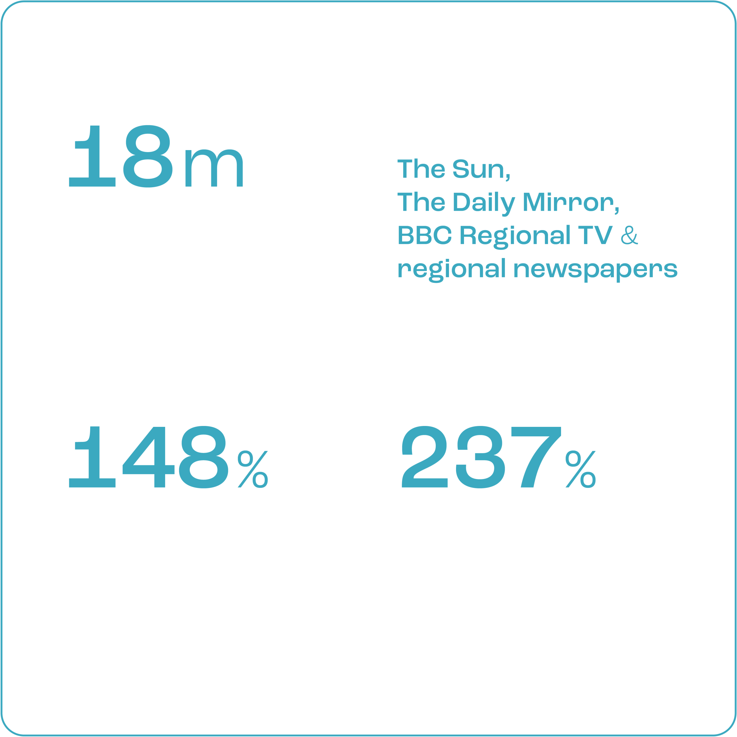 - 7 million people reached through national media coverage including The Sun, The Daily Mirror, BBC Regional TV, and widespread regional newspapers